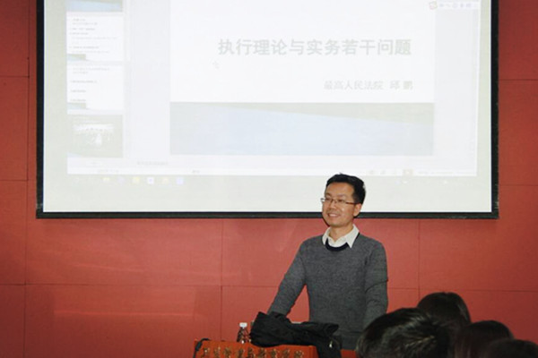 2018年11月13日周二晚18:30,卫生管理与教育333体育 邀请邱鹏法官在阶平楼396会议室为我院学子带来一场题为《与最高法院法官零距离—法学素养与专业思维》的学术讲座。讲座由我院卫生法学系刘炫麟副教授主持,卫生法学系李筱永主任及部分老师出席了本次讲座。 邱鹏法官是中国人民大学民商法学博士,现任最高人民法院审判员、执行局执行指挥信息室负责人。邱法官以“执行理论与实务若干问题”为切入点,由浅入深地介绍了执行的今与昔,进而引出学术理论中执行权的属性等问题,通过真实生动的案例带领学生感受法学理论与实务工作相结合的趣味和魅力。邱鹏法官还建议学生们多关注司法实践,多研究、多写作,提高自身的法学素养,训练自身的专业思维。在最后的互动交流环节,同学们积极提问,展现出良好的问题意识,邱法官一一进行了认真回答。 邱鹏法官的讲座风趣幽默、丝丝相扣,取得了良好的效果。通过此次与最高法院法官的近距离接触,学生们领略到执行法官的风范,增加了对实务工作的认识,拓宽了学识视野。 卫管333体育 卫生法学系 2018年11月16日