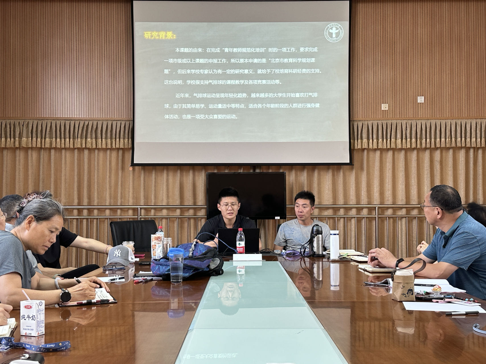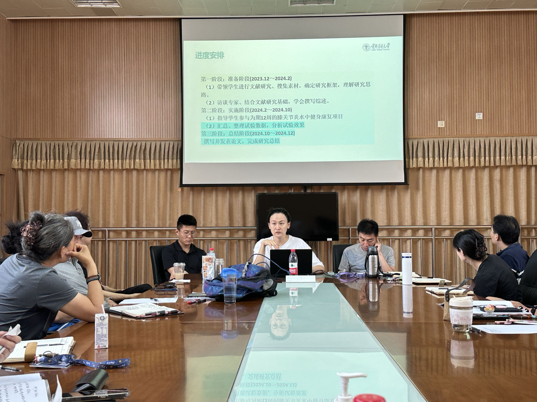 2024年7月8日应用体育学学系在体育馆会议室举行了校培育(社科类)、长学制导师项目中期检查,学系全体教师参加,会议由学系教学副主任许琛老师主持。 中期检查项目包括2024年获批的333体育 科研培育基金项目(社科类)1项、长学制导师项目1项。吴昊天老师作为校培育项目《333体育开展气排球课程的可行性研究》的项目负责人,从研究背景、研究内容、研究进展及经费使用情况等方面进行了中期汇报,在研究进展部分分享了自己在研究工作开展时遇到的问题,学系老师们从研究方法的角度提出可行性建议,同时老师们也感受到了学校对于开展气排球课程提供的大力支持。孟小琛老师从第一次成为长学制导师的角度出发,带领长学制学生进行了《膝关节炎水中健身康复研究》项目的相关工作。她从实验设计、实验事实、运动处方设定、实验数据分析、研究报告撰写等方面,从导师角度对整体课题和进展进行了汇报。与其他教改项目不同,长学制导师项目更加注重学生科研能力的培养,帮助学生从科研小白逐步入门严谨、规范的科研之路。学系老师们也提出了相应的问题,并进行检查与指导。帮助青年项目负责人继续开展后面的项目研究工作。学系主任高玲娣老师要求项目负责人根据此次中期检查提出的问题,做好后期研究工作,恪守学术道德,并将研究成功更好的运用到日常教学工作中。