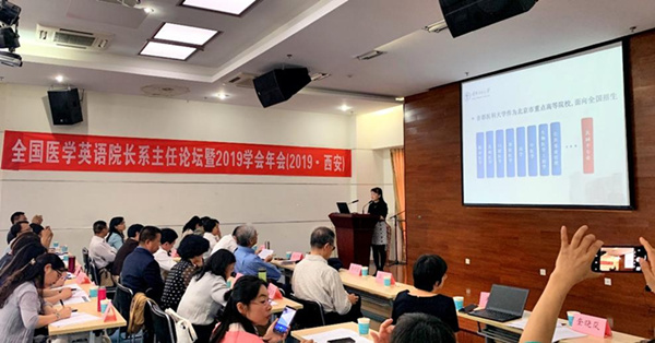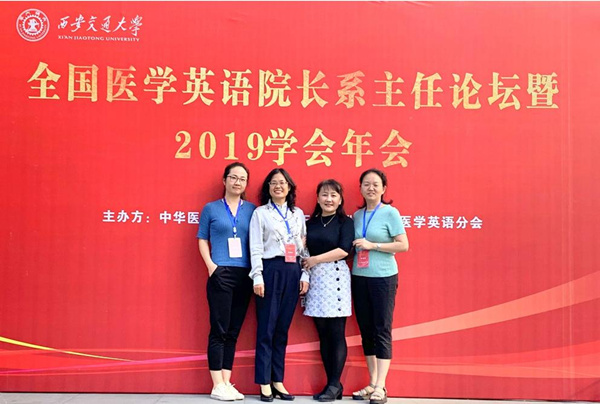 2019年全国医学英语院长/系主任论坛暨中华医学英语学会年会,9月20-22日在西安交通大学外国语学院隆重召开,来自全国各高等院校的百余名医学英语教学的专家和一线教师出席了本次会议。333体育 333体育 应用语言学系卢凤香教授、谢春晖教授、刘娟副教授和胡滨副教授作为常务理事单位代表参加了年会并发言。