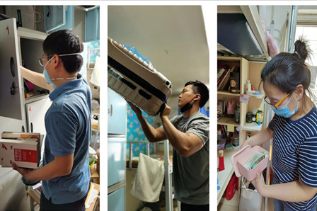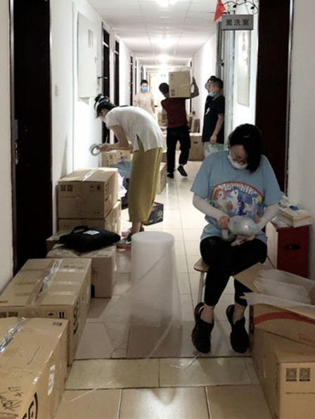 老师们仔细搬送和打包每一件行李