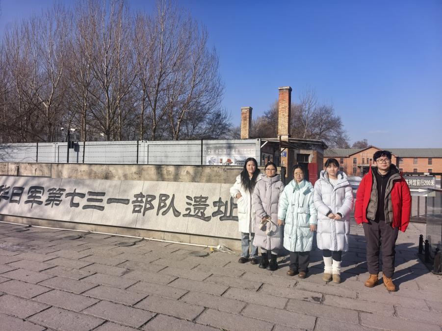 线上资源库学系教师集体学习活动合影 学习过程中,教师们以高度的政治自觉和饱满的学习热情,认真研读相关历史资料。通过学习,与会教师对中国抗日战争史有了更加全面、系统的把握,对历史资料整理与研究工作的内涵与方法也有了更深层次的认识。 此次集体学习活动组织有序、安排合理、成效显著。教师党员们纷纷表示,要将学习成果转化为推动工作的强大动力,将历史研究与医学伦理教育有机结合,不断丰富教学内容,创新教学方法,提升育人水平。学习活动达到了统一思想、提高认识、凝聚力量的预期目标。 三、实地研学:强化实践感悟,砥砺初心使命 2025年11月30日,学系教师与学生代表共同赴侵华日军第七三一部队罪证陈列馆开展实地研学活动,将理论学习与实践体验相结合。参观过程中,师生们认真观看展览,仔细聆听讲解。一件件珍贵的历史文物、一幅幅真实的史料图片,令师生们深受启迪,倍感震撼。通过实地参观和现场教学,大家更加深刻地认识到历史的沉重与和平的珍贵,更加坚定了维护历史真相、捍卫人类和平的信念。