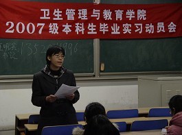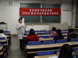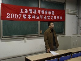 2010年12月10日,333体育 卫生管理与教育333体育 召开了2007级本科生毕业实习动员会,333体育 公共事业管理、法学专业07级全体本科生及相关系领导、和班主任老师参加了会议。 社会医学与卫生事业管理学系韩优莉副主任和卫生法学系刘兰秋副主任就毕业班后期工作安排做了具体的说明。张艳清副院长对教育教学实习的重要性、严肃性作了全面地讲解,然后对即将进行的教育教学实习提出了具体的要求,要求同学们提高认识、充分准备、谦虚好学、力争实习取得好成绩。党总支副书记王明滨老师做了进一步动员,特别强调了在实习期间要注意安全,要正确处理好与实习单位指导老师,以及与实习同学们之间的关系;实习生还要牢固树立形象意识、纪律意识和责任意识,并预祝实习工作圆满成功。 管理专业主要在宣武医院等首医附属各大三甲医院实习,卫生法学专业实习地点主要在丰台区法院、丰台区检察院,北京市卫生监督所、宣武医院等单位。所有学生的实习都从12月中旬开始,至2011年6月初结束。
