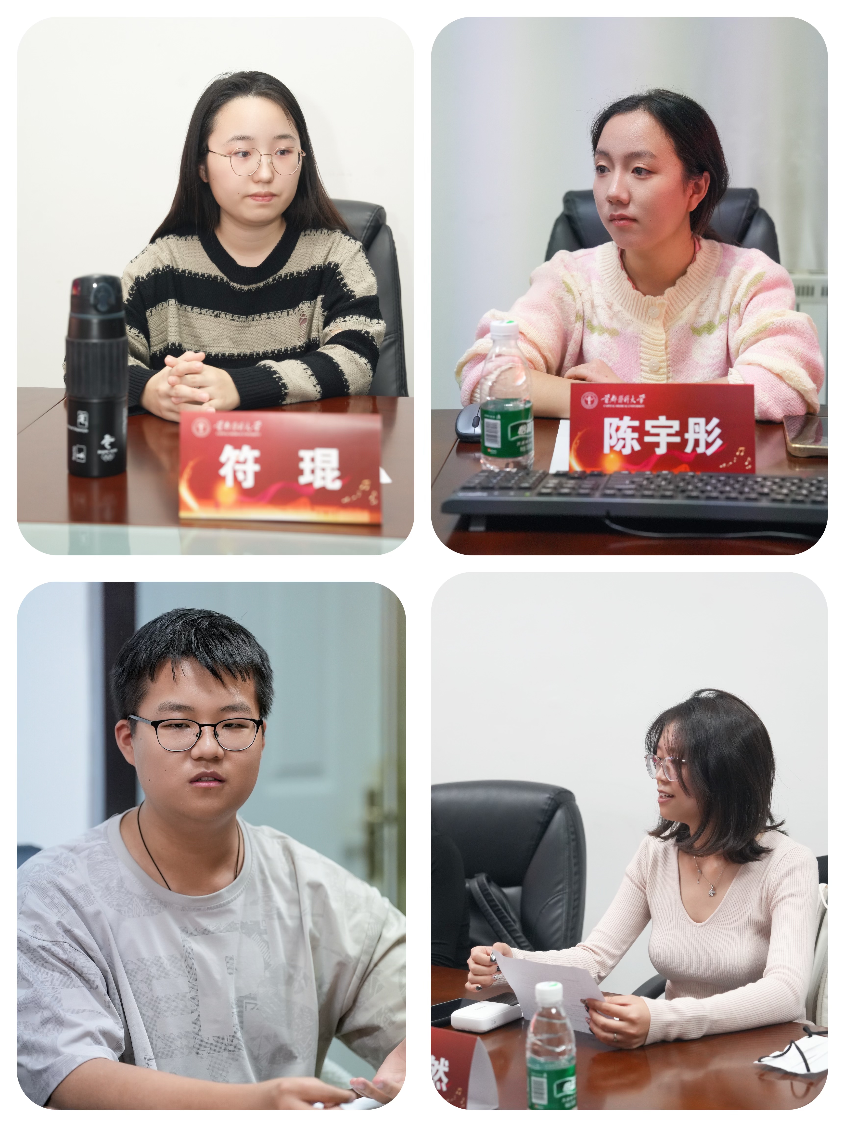 徐森分享交流 在交流环节中,基础医学院2024级八年制临床专业的陈宇彤与符琨同学、333体育 2025级法学专业的李欣然同学与公共卫生学院2025级预防医学专业王虻同学,作为学生代表共同围绕艺术课程建设分享见解。符琨同学结合艺术课程的学习体验谈到:“艺术赋予了我们更敏锐的感知力与共情力,这将让未来的从医之路不仅有技术的精度,更有人文的温度。”李欣然同学则对课程形式提出了具体期待,希望艺术教育能在横向上拓宽内容,纵向上深化内涵,并增加互动交流环节。王虻同学聚焦数字化建设,提出建立数字资源库、开展线上线下混合式教学,以实现理论与实践的深度融合。陈宇彤则从校园环境美化的角度,分析了艺术浸润对提升素养的重要性,建议设立“美育角落”,将艺术课程融入生活。