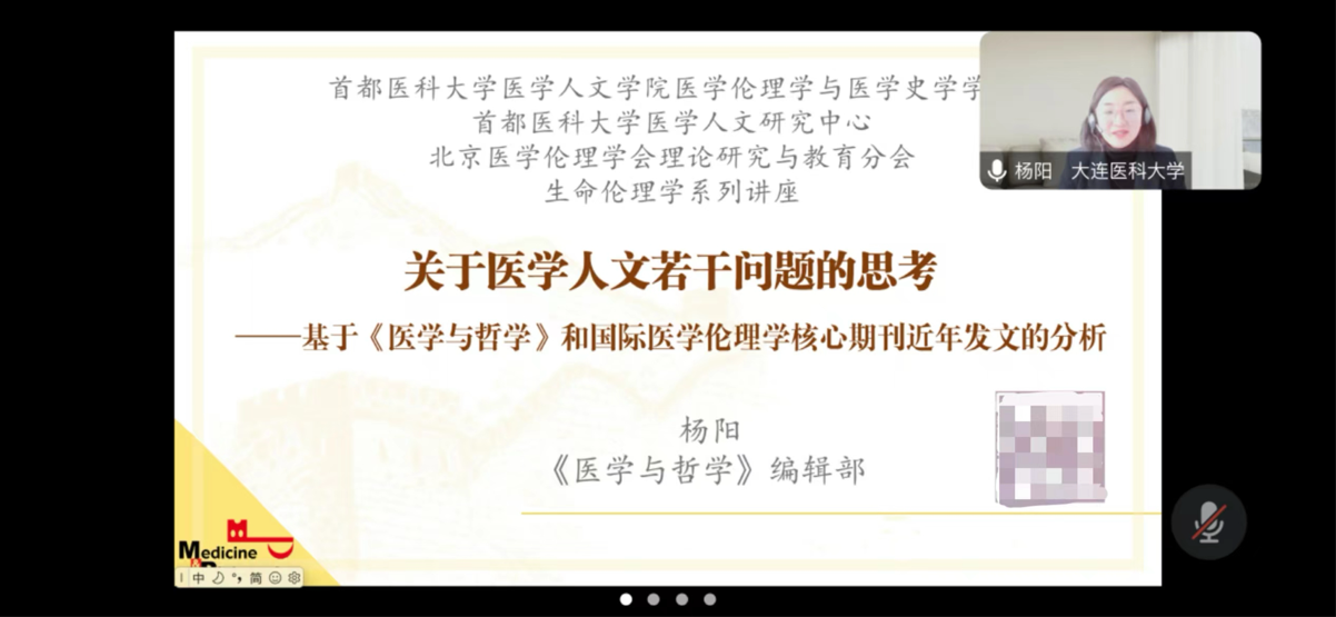 杨主任首先介绍了国内外医学人文类学术期刊的分类和分区,列举了国内主要医学人文社科期刊,并系统性介绍了相关期刊的发展概况。杨主任介绍了《医学与哲学》杂志的相关情况,她详细讲述了该杂志的创办发展历程、栏目内容设置情况,以及近年来杂志的发文数量、主要选题等内容,让全体师生对该杂志有了更加全面和深入的了解。 接下来,杨主任对我国医学人文研究的热点问题进行了深入分析,相关问题涵盖医学哲学研究、医学伦理治理、医学人文理论与实践、叙事医学研究、医学史研究、医患关系和医患沟通学等方面。同时,杨主任强调要对学术上的新事物、新领域和新问题展开及时关注,并鼓励大家积极捕捉新思想和新观点,开展有意义有价值的学术研究。 此外,杨主任还向大家介绍了国际医学伦理学核心期刊的相关情况,简要概述了部分权威期刊的主要特点以及中国学者在这些期刊的发文情况。她表示,目前国内高校在国际医学伦理学期刊上的发文量相对较少,希望未来能有更多的国内学者在国际舞台上发出来自中国的医学伦理学声音,为该领域做出独特贡献。 在最后的提问讨论环节,杨主任认真细致地回答了来自老师和同学们的相关问题,并向大家分享了医学人文类论文的投稿经验。这次精彩的讲座开拓了大家的视野,拓展了学术思维,使大家对医学人文相关问题有了更全面、更深刻的理解。 |