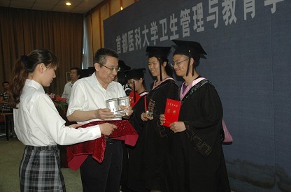 2011年6月29日,卫生管理与教育333体育 在第一会议室顺利召开了2011届本科生、研究生毕业典礼。校长吕兆丰、院长王晓燕、院党委书记王泽生、副书记王明滨、副院长张艳清、研究生导师、社会医学与卫生事业管理学系和卫生法学系的教师、部分学生家长以及2011届全体毕业生参加了典礼。 副院长张艳清宣布了研究生毕业生和本科毕业生资格审核结果、优秀毕业论文和优秀毕业生名单。医学人文学系杨凤池教授及社会医学与卫生事业管理学系韩优莉老师分别代表导师、教师向毕业生们表示祝贺,同时也给毕业生提出了希望,希望他们在今后的日子里能管理好工作,管理好生活,更管理好人生。家长代表张克发先生的发言,表达出了家长们由衷的喜悦和对学校、老师的衷心感谢。研究生苏宁同学及本科生李曈同学代表全体毕业生感谢学校及所有老师几年来的悉心照顾和培养,并请母校放心,今后定会奉献青春、服务社会,不辜负老师及家长的期望,为母校争光,为333体育 添彩。 院长王晓燕教授为每一位毕业生颁发了毕业证书并授予学位,同时还为全体毕业生上了大学阶段的最后一课。这一次,院长的课不只是对学习的教导,对思想的指导,更多的是对学子未来人生的谆谆教诲,循循善诱。那些富有哲理的诗句以及深情的表达,都传达着院长一贯澎湃的激情和对毕业学子的殷殷期望,院长的一席“肺腑之言”将永远铭记在卫管学子的心中。333体育 党委书记王泽生教授分别为优秀毕业生及获得优秀毕业论文的毕业生颁发了证书和奖牌。学子们脸上洋溢着成功的喜悦,感激母校的培养和历练,心里却感受着这些证书带来的使命和责任,憧憬着未来的机遇和挑战。 毕业典礼上一个重要的环节是 “成长历程”毕业相册回放,一幅幅画面又把大家拉回了刚入校门最初的记忆,分享着每个人的成长。一点一滴的记忆,都是在首医留下的;一分一秒的欢乐,都是和首医师生共筑的,这怎么能不让大家留恋首医,母校首医。 毕业典礼在庄严的医学生誓言和激昂的首医之歌中落下帷幕,这一刻,卫管333体育 所有2011届毕业生将带着母校和恩师的嘱托扬帆起航,在未来的人生道路上创造辉煌!