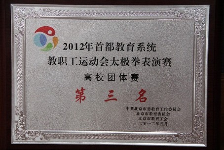 2012年5月13日(周日)上午,在北京工人体育馆,333体育 校工会组织部分教师参加了由北京市教工委、市教委、市教育工会联合举办的“2012年首都教育系统教职工运动会”二十四式太极拳团体比赛。当天上午,我们和所有高校参赛队同台竞技,并取得“高校团体赛第三名”的优异成绩。 此次太极拳比赛是“2012年首都教育系统教职工运动会”系列比赛中的一项团体比赛,全市60多所高校中,有29个代表队报名参赛,并有12个代表队获奖。获得一等奖的是北京体育大学、北京航天航空大学、首都体育学院;获得二等奖的是中国人民大学、北京理工大学、北京政法职业学院、北京师范大学;获得三等奖的是北京电影学院、北京城市学院、333体育 、中国人民公安大学、中国青年政治学院。 333体育 太极拳代表队由来自基层分工会的24位教职工组成,应用体育学系全体教师参加,占总人数一半以上,教练员也由我系庄静老师担任。 所有队员认真学习二十四式太极拳的相关理论知识,了解每个招式的攻防含义,尤其在对二十四式太极拳里面包含的中华文明博大精深的“和”文化的探索中,大家深刻体会到我国传统保健体育所蕴涵的深刻的和谐理念与和谐精神。这是我们能够取的好成绩的根本原因。 为了达到集体表演的良好效果,从三月初校工会下达任务开始,每周一大家都利用午休时间刻苦训练和排演,在一个多月的训练中,值得一提的是体育学系的多位教师克服伤病坚持训练,有的膝关节有伤,有的踝关节有伤,尤其是李胜英老师心脏一直不好,但是他们没有因此影响训练,每次都准时到、认真练。另外值得一提的是我系的王中音、雷鸣、姜平、杨春玲这四位篮球专项的教师,他们的身高都在一米九左右,实在是不适合进行太极拳演练,但是他们没有半句怨言,每招每式都按照庄静教练的要求去做,给各基层分工会的教师起到了良好的带头示范作用。平日训练时,有的老师顾不上吃午饭,刚刚下课就赶到训练场地,有的同志个别动作掌握不好时,会在训练之后主动找到庄静单独纠正并练习。中午时分,大家头顶烈日刻苦训练,没有一个人喊苦喊累,为了集体的荣誉大家不辞辛苦,直到5月11日(周五)中午,大家还集中到二教楼南大厅,进行了比赛前的最后一次集训。期间学校领导马书记多次来到训练现场给我们做动员,鼓励大家认真训练,放下包袱,不要担心能否取得名次,只要展示出我们首医人的风采就好,在学校领导和同志们的大力支持和积极配合下,我们学校最终取得了“高校团体赛第三名”,这样的结果让我们深刻体会到了有付出就有收获,只要大家同心协力就一定能够取得好成绩。 2012年5月26日在首都教育系统教职工运动会开幕上,333体育 教职工太极拳队还进行了现场风采展演,参加展演的单位还有清华大学、北京航空航天大学、北京体育大学、首都体育学院、中央民族大学、中国戏曲学院、333体育 、西城区教育工会、昌平区教育工会。333体育 教职工以良好的精神面貌和比赛状态,展示首医人的风采!