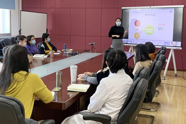 董铁妮主任首先对2021-2022学年第二学期的研究生及本专科教学工作进行了部署,重点强调了下学期采取线上教学工作应注意与相应教学班级建立好联系,并建立好线上授课路径,确保师生间沟通联络的畅通。同时,她还提醒各学系完成好本学期的考试成绩填报与制作课表工作。 张清华副院长就做好本学期期末工作、充分做好春季学期教学准备工作做了强调,要求各学系按照学校统一部署认真落实,提前做好春季学期前三周线上授课以及做好第四周及之后课程线上、线下教学的两手准备,并明确要求落实好法学(卫生法学)专业毕业班春节后的实习安排。同时,她强调由于2021级培养方案与课程教学大纲的调整,各学系要注意新变化,加强提醒和沟通,准确、扎实地做好教务前期工作。 张清华副院长还传达了教务处有关本科教学改革工作的指导意见,希望各学系重点围绕基础与临床师资融合建设,教师教学工作评价量表填报、临床医学专业认证、课程思政建设等方面,提前做好相应工作准备,并就学院2022年进一步推进课程思政建设思路与大家进行了沟通。 王君书记随后发言,她首先感谢了各位老师一年的辛苦付出,保障了学院教学工作的平稳顺利开展,她表示,在疫情防控与北京冬奥会多重因素影响下,各学系需要做好教学工作的随时调整的准备,并做好教师非必要不出京的引导。她希望通过增加院系沟通,注重细节把控,共同开展好2022年的各项工作。 会议最后,应用语言学学系教师陶鑫老师从教学设计、教学目标、教学模式、教学评价与反馈等几个方面分享了《大学英语》课程在阶平班的教学经验。在场教师与陶鑫老师进行了交流,并纷纷表示将把《大学英语》的教学经验与各自课程的实际情况相结合,开展具有各自学科特色的阶平班教学工作。