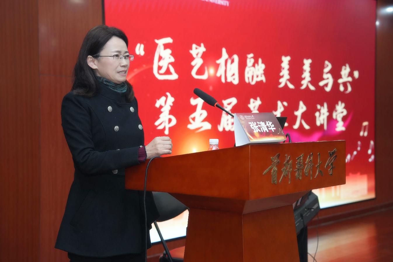 张清华主持讲座 “医学守护生命健康,艺术温润心灵,二者共同以‘关怀人、滋养人’为本质”,张清华在致辞中深刻点明医艺融合的育人理念。