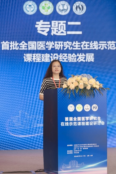 研讨会上为认定课程颁发证书和奖杯 研讨会上,卢凤香院长做了《数智时代医学研究生英语在线课程建设与实践》的报告,分享了333体育医药学研究生在线课程建设的经验和心得,受到与会者的一致好评。