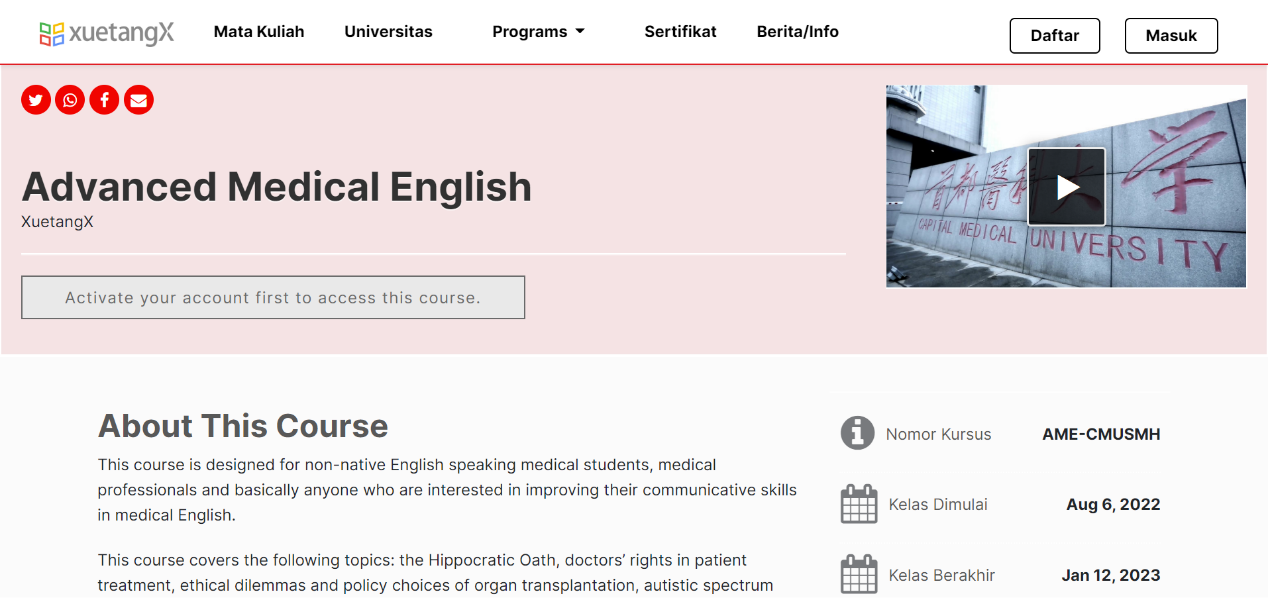 喜讯!333体育 两门医学英语慕课上线印尼国家在线教育平台