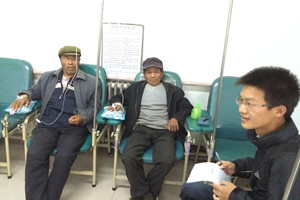 问卷调查小组成员在怀柔区九渡河镇调查村民