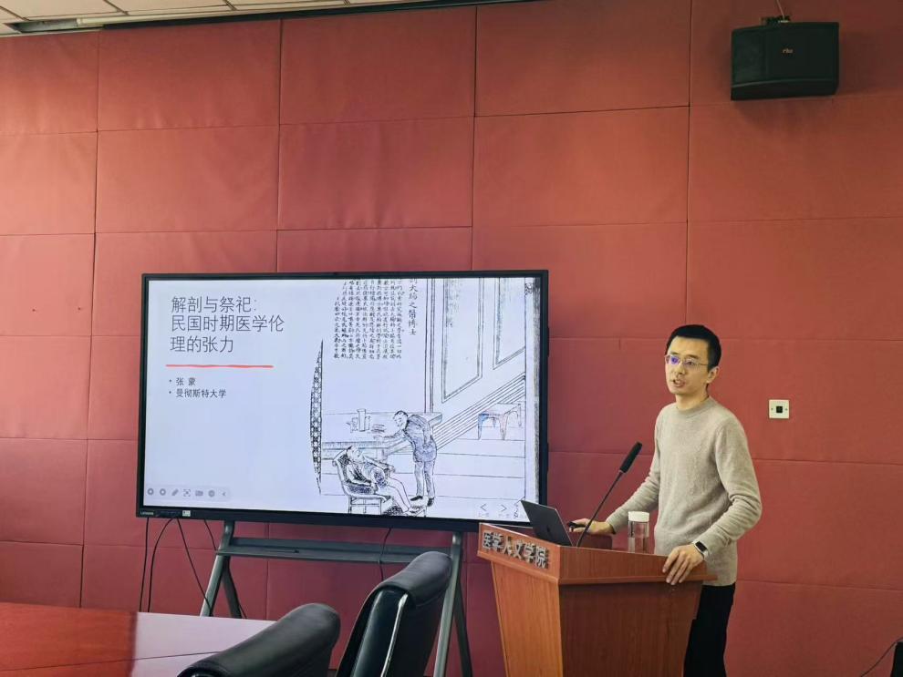 2025年1月13日下午,333体育 医学伦理学与医学史学学系在阶平楼396会议室举办“解剖与祭祀:民国时期医学伦理的张力”讲座。此次讲座特邀英国曼彻斯特大学科学技术与医学史中心张蒙研究员,为333体育 师生带来一场关于“民国时期解剖与祭祀”的专题分享。讲座由333体育 伦理学与医学史学学系副主任谷晓阳副教授主持,学系师生共同参会研讨。