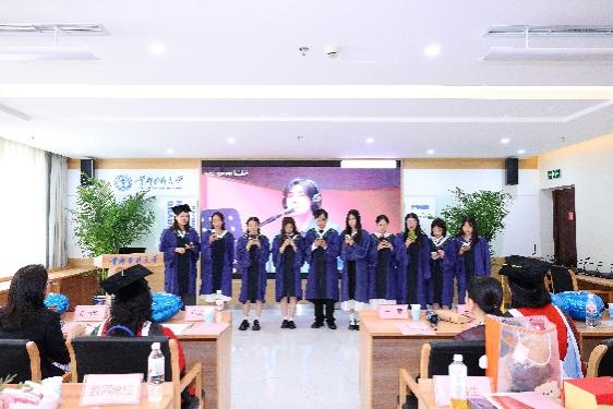 导师代表丁欣放副教授发言 典礼特别设置了文艺表演环节。毕业生们用《光阴的故事》《世界赠予我的》等歌曲,唱响青春誓言,传递对未来的美好憧憬。动人的旋律中,往昔同窗情谊历历在目。