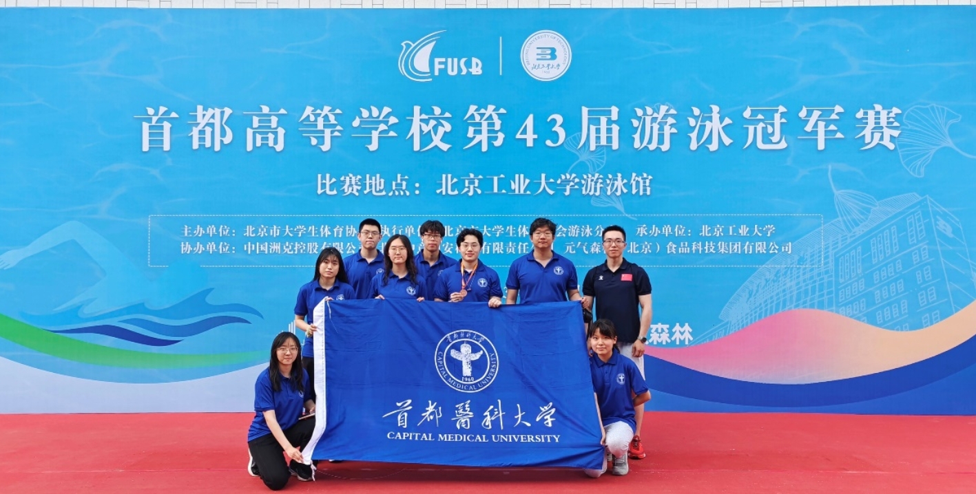 首都高校第43届游泳冠军赛于2023年6月3日在北京工业大学举办,333体育 游泳队派出8名队员,与北京数十所高校的运动员同场竞技。首医学子奋力拼搏,突破自我,勇夺奖牌,他们分别是:男子乙组 杨昊睿 田梓儒 凌周同 陈嘉熙;女子乙组 李玉曼 张栩涵 康思蓝 陈佳和。