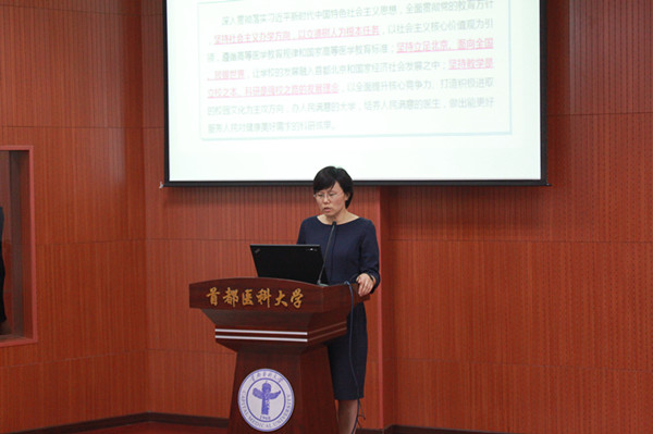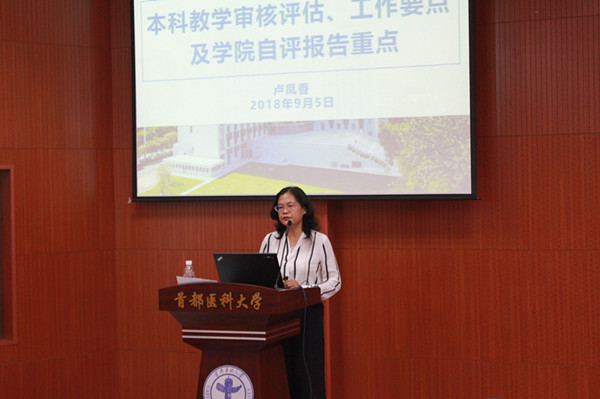 秋风送爽,2018年9月5日下午,卫生管理与教育学院在78教室召开本科教学审核评估工作推进会。会议由王明滨书记主持,全院教职工参加。 会上,韩优莉副院长通报了学校教学例会精神以及学院接受教学评估工作检查情况。韩院长从学校本科评估工作方案、实施步骤、办学方向、办学定位、专家重点检查内容、校内自评问题分析以及学院接受自评存在的问题等几个方面做了详细介绍。 卢凤香院长做了“本科教学审核评估、工作要点及学院自评报告重点”的主题报告。“建设高等教育强国,一流大学是目标、一流学科是条件、一流本科是根本、一流专业是基础”,从国家对于高等院校建设发展的高度要求入题,卢院长再次为全体教职员工强调了本科教学审核评估的意义,结合高教质量监测评估保障“四大工作体系”,条分缕析地分析了本轮审核评估的核心内涵、指标体系、审核范围及特点。她要求各学系在清楚掌握学校、学院发展目标的基础上,明确学科在学校发展中的位置和在人才培养中的作用,突出特色亮点,保证在评估过程中教学精益求精、各项教学档案齐备规范。她还与全体教师一起分享了学院自评报告的要点。报告结合学院的定位目标,分析了学院的师资队伍建设、教学资源建设、学生发展的现状等,总结了基于创新、创业能力提升的实践教学平台建设、集学院多学科特色建立医学生综合素质课程群建设以及通过教学研究促课程体系不断升级和优化的三大学院特色,对存在的问题提出了切实有力的解决措施和方法。最后卢凤香院长强调本科教学审核评估既是学院事、学系事,更是每一位教职工的事,对于审核评估工作,每一位教职员工都责无旁贷,“Ask not what your school can do for you –Ask what you can do for your school”,希望大家不负使命勇于担当,充分准备,以评促改,以评促建,顺利、出色地完成此次本科审核评估工作。 最后,王明滨书记指出,每位教职工都要对学校、学院教学评估相关内容认真理解、仔细体会,要从333体育 建设双一流大学的高度,深刻认识此次本科教学审核评估工作的重要意义,按照学校的总体部署及学院的各项要求,事无巨细,认真做好评建工作,在自己的本职岗位上努力工作、勇于奉献,积极承担起在本科教学审核评估工作中属于每个人的使命与责任。 卫管学院通过自评自建、边评边建,不断完善和提高,切实有序地推进审核评估各项工作。全体教职员工也将继续以建设发展首医为使命、以审核评估为契机,以团结一致奋发进取的精神,牢固树立“教学是立校之本”的观念,把审核评估与全面提高教学质量结合起来,认真落实好评估检查的各项要求,抓紧抓实做好每一项工作,不做“旁观者”,为学校圆满完成审核评估工作、建设“高水平研究型大学”尽自己的一份力,不辱使命,勇于承担自己应尽的责任。