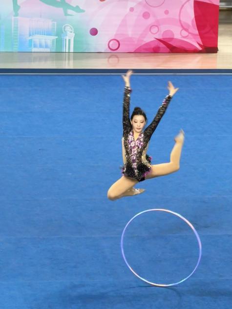 上午八点,同学们早早来到赛场,换上比赛服在教练的指导下做最后的赛前准备。从热身到压腿,从行进间练习到成套动作的演练,每位队员都严阵以待,没有丝毫松懈。 集体比赛讲究默契和配合,上场前队员们相互击掌鼓励并在老师的指导下反复练习难度动作和队形变化,力求准确同一。赛场上,队员们通过无声的眼神交流,给于彼此肯定和力量。333体育 艺术体操队的精彩表演,得到了裁判的青睐,也增强了集体荣誉感。